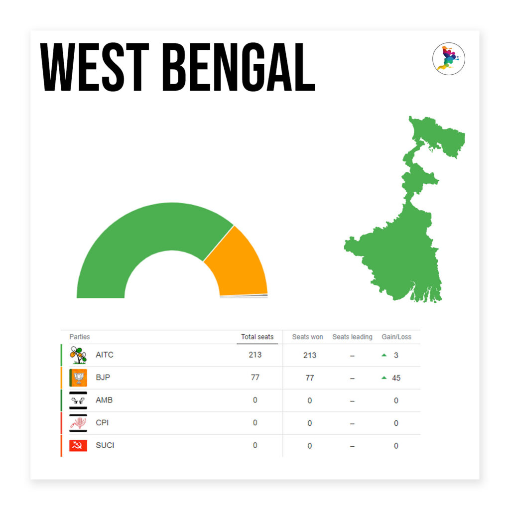 In West Bengal, it was the ‘Didi’ factor that played the prominent role. Though BJP came just a poor second, its vote tally, when compared to the previous election, was a huge jump.