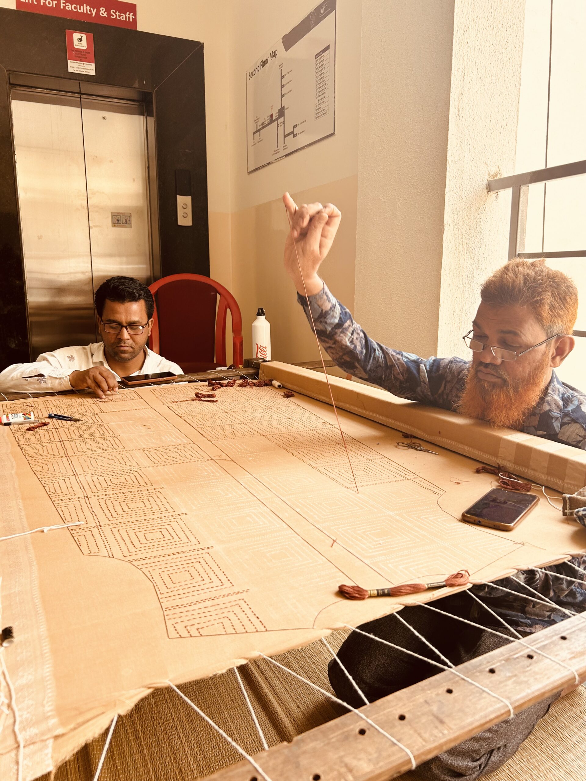 Many public figures have rejuvenated Kantha’s journey over the years, like Pratima Devi (daughter-in-law of Rabindranath Tagore), designer Tarun Tahiliani, Sabyasachi, and Ritu Kumar. This revival of the cottage industry helped Hafiz and his team to get to work again. It was like a new lease of life. With an emphasis on the Make in India government initiative, the promotion of handicrafts, and sustainability, their work has picked up. Their per-day wage also increased as specialized boutique owners, designers, and design students started hiring them on a project basis. In addition, the newfound interest in this art makes Hafiz hope that people realize the beauty of this art; it is not a trend but a classic that can be passed down for generations.
